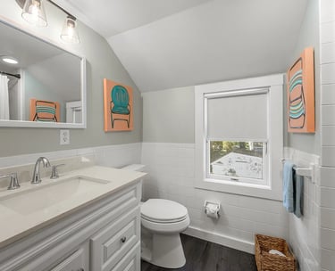A charming cottage-style house steps from the shore, perfect for unwinding with ocean breezes.